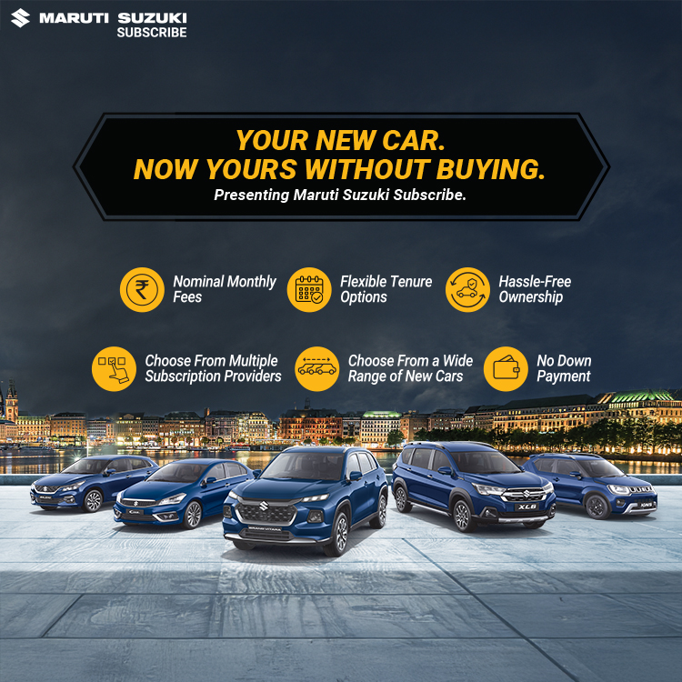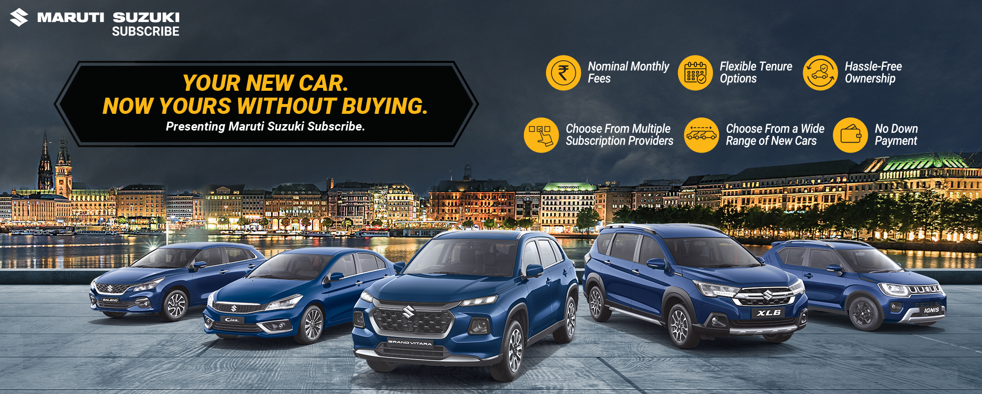 Located in Silchar, Jain Udyog offers a plethora of options of Nexa cars for Maruti Suzuki Subscribe. You can choose your desired Maruti Suzuki car and drive it home at nominal monthly fees for a variety of flexible tenure periods. Whether you prefer Hatchback, Sedan, SUV or even MUV you are sure to find it at Jain Udyog, VIP Road with an easy Maruti Suzuki Subscribe plan.